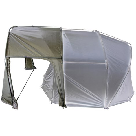 - K dispozícii je predný vchod s prídavnou vstavanou moskytiérou a priehľadným čelom, alebo veľké, samostatne uzamykateľné bočné dvere.