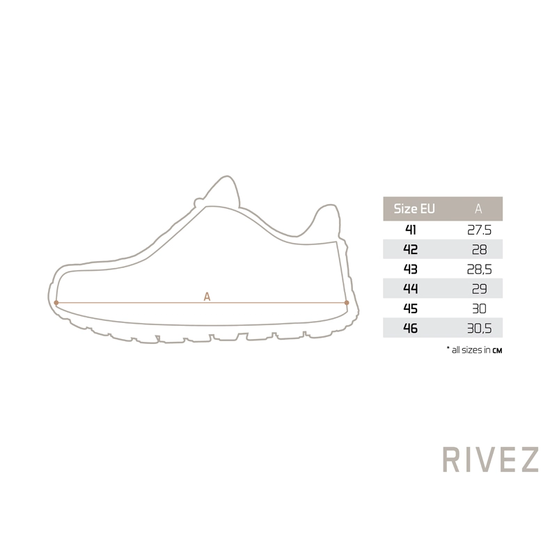 Model RIVEZ je navrhnutý pre pohodlné a bezpečné celodenné nosenie aj v náročnejších podmienkach, kde je potrebná istota v každom jednom kroku. Kľúčovou a najdôležitejšou výhodou je ich nepremokavosť, ktorú zaisťuje špeciálna membránová ponožka vo vnútri topánky. Vďaka tomuto riešeniu sa nemusíte obávať mokrej trávy, náhleho dažďa či blata. Vaše nohy zostanú spoľahlivo v suchu za akýchkoľvek okolností.