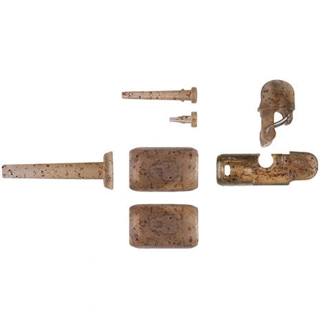 Patentom chránená camo sada pre helikoptérovú montáž, ktorá obsahuje všetky potrebné komponenty na zostavenie troch kompletných montáží na rôznych typoch náväzcových materiálov.