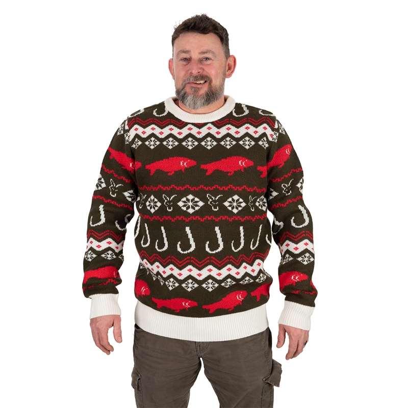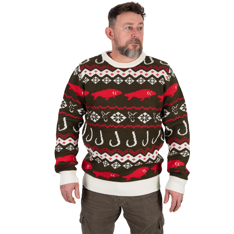 Pro věrné 44,45 €. Jak na to?Štýlový a veľmi pohodlný pletený vianočný sveter s logom FOX a motívom rýb.