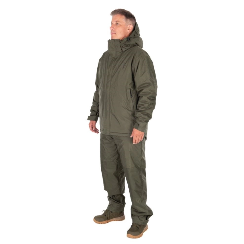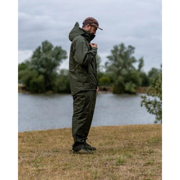 Kompletný hrejivý set obsahuje bundu aj nohavice s kompletným zateplením tela a ochranu pred vlhkosťou pri chladnom a daždivom počasí.
