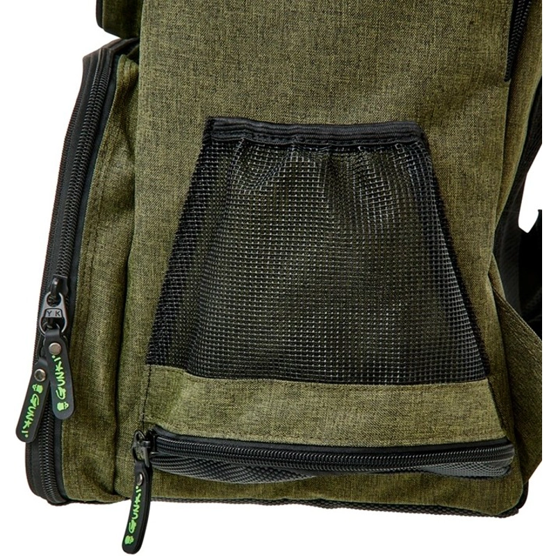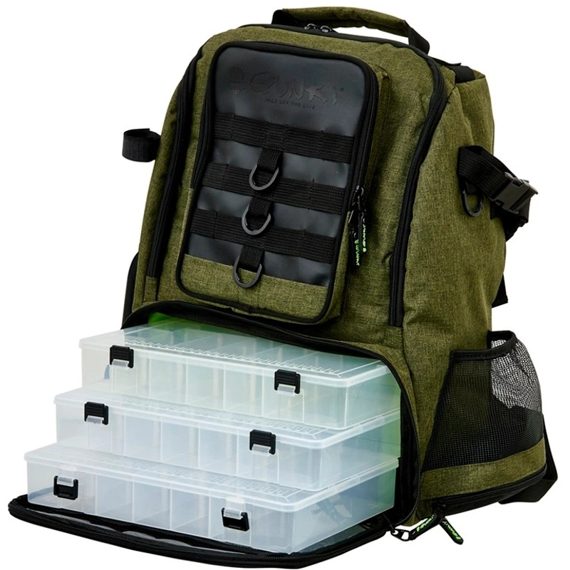 Batoh pre milovníkov prívlača, ktorí hľadajú dokonalú mobilitu pri svojom rybárčení. Batoh je vybavený dvoma hlavnými komorami na zips. Spodná väčšia komora navyše obsahuje 3 krabičky na nástrahy. Na vonkajšej strane nájdeme dva držiaky prútov, vrecko na pitie, menšie vrecko na drobnosti so zipsom a niekoľko krúžkov na uchytenie ďalšieho príslušenstva. Vďaka ergonomickému tvaru perfektne sedí na chrbte a pohodlie zaisťujú polstrované výstuhy a široké ramenné popruhy, ktoré sú navyše zaistené nastaviteľným hrudným popruhom. Batoh je navrhnutý pre dlhšie túry a poskytuje spoľahlivú oporu a komfort. S Pevná odolná tkanina je doplnená o kvalitné zipsy. To všetko v Gunki designe.