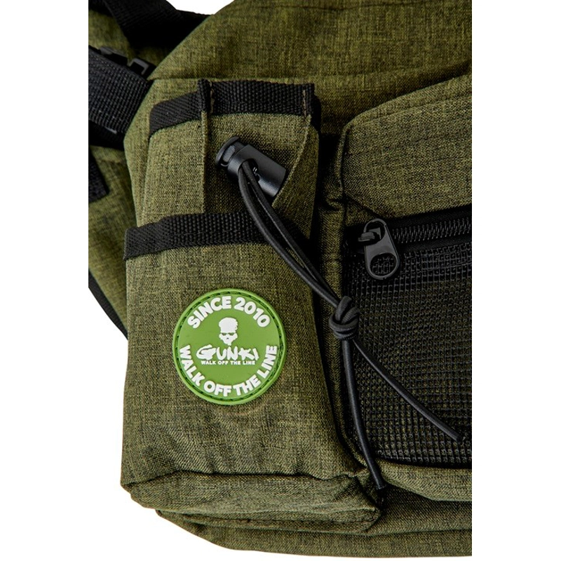 Pro věrné 39,54 €. Jak na to?Praktická ľadvinka pre lov na prívlač. Obsahuje hlavnú komoru na zips, ktorá je navyše zaistená klipmi. Ďalej obsahuje menšie sieťované vrecko, malé vrecko na zips, držiak klieští, vrecko na pitie a D krúžok na ďalšie príslušenstvo. Nastaviteľný popruh na jednoduché použitie. Pevná odolná tkanina je doplnená o kvalitné zipsy. To všetko v Gunki designe.