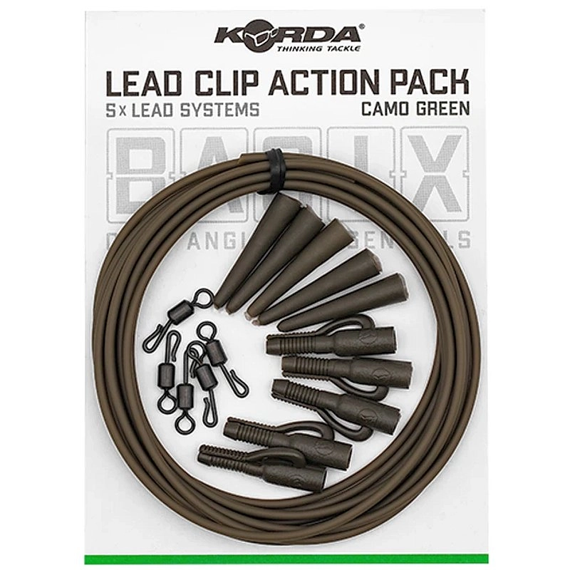 Pro věrné 5,47 €. Jak na to?BASIX Lead Clip Action Pack vám poskytne všetky komponenty, ktoré potrebujete na zostavenie piatich klasických montáží. Všetko v tejto sade má kamuflážovo zelenú farbu, aby dobre ladilo s dnom jazera. Akonáhle to dáte dohromady, všetko, čo musíte urobiť, je pripnúť na náväzec – napríklad BASIX Ready Tied Hair Rig – a pridať záťaž, a ste pripravení nahodiť.