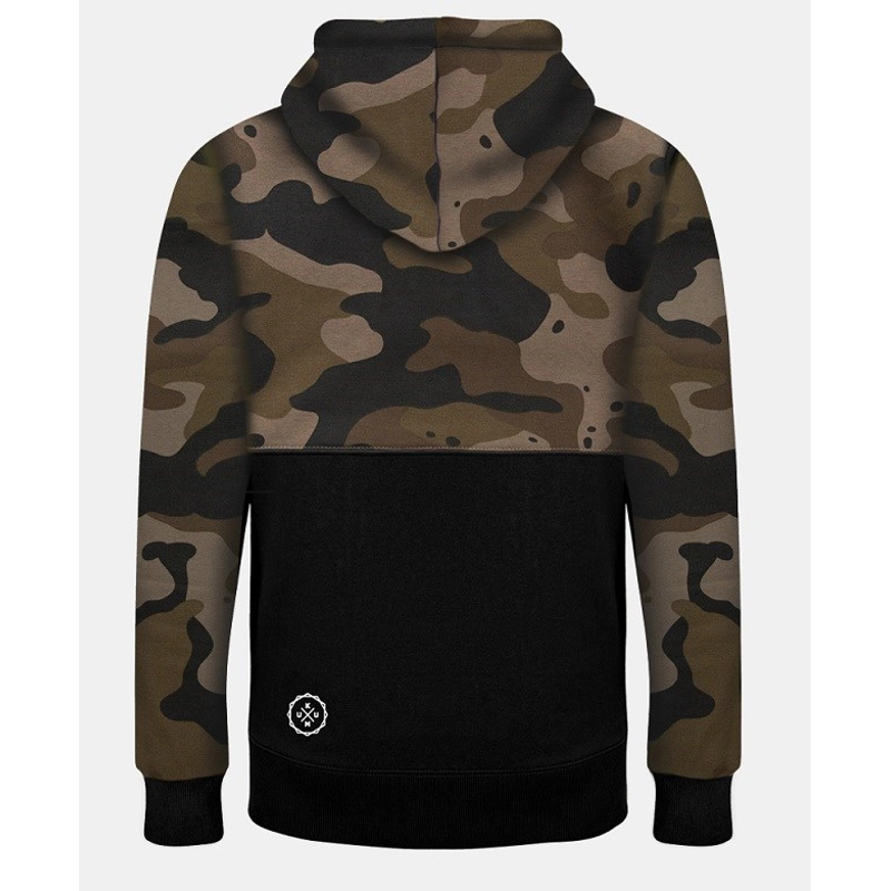 Kumu štýlová mikina DECEPTION s jedinečným maskovacím vzorom v tlmených khaki/hnedých tónoch. Vyrobené z 320g/m2 česanej tkaniny, ktorá je dokonale mäkká na dotyk a neskutočne pohodlná. 4farebná celo camo potlač s kontrastnou čiernou spodnou časťou tela. Tkaná nášivka na paži a potlač s ikonou loga KUMU na spodnej časti chrbta.