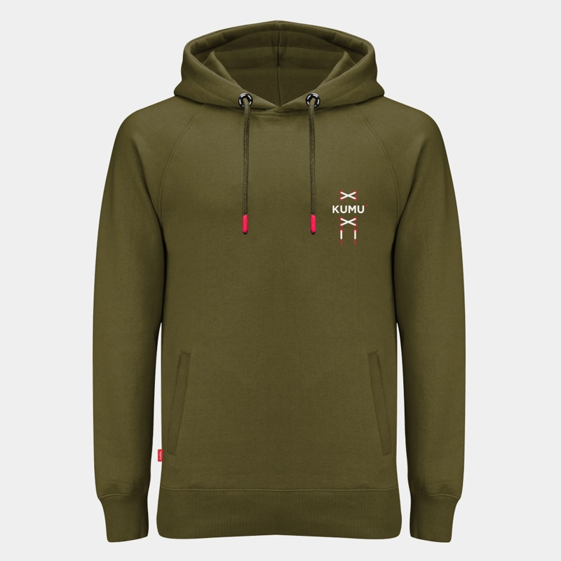 Mikina Earn Your Stripes je grafická pocta ostriežom („Stripeys“) a rybárskej trpezlivosti – motív kombinuje pruhy ryby s narážkou na úspech, ktorý si musí rybár zaslúžiť. Vyrobená z mimoriadne mäkkej khaki tkaniny s gramážou 150 g/m², s detailnou šesťfarebnou sieťotlačou a tkanými bočnými štítkami.