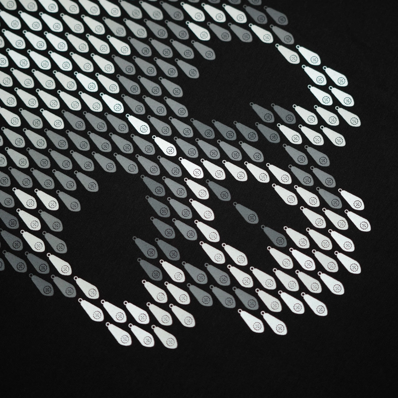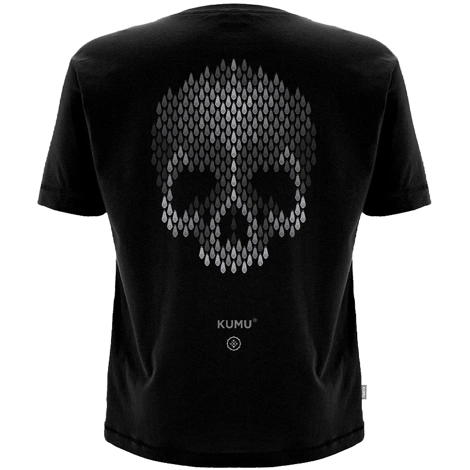 Ak sledujete značku KUMU od samého začiatku, možno si pamätáte túto ikonickú grafiku z roku 2019. Motív lebky je vytvorený z rybárskych olov a spracovaný v 3D gradientnom efekte v chladných šedých tónoch. Tričko je vyrobené z mimoriadne mäkkej látky s gramážou 150 g/m² a doplnené o tkané pútko na bočnej strane.