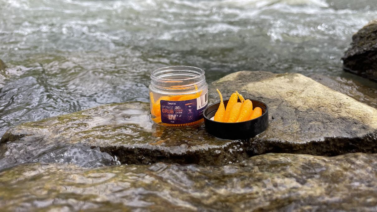 Oranžové gumy na pstruhy B! StinxGRUB majú napríklad silnú syrovú arómu, ktorá páchne ako zrejúci syr. Tento typ oderu z mojich vlastných skúseností patrí pri love pstruhov k tým najúspešnejším. Rybári ale potom môžu siahať aj po cesnakovej alebo krevetovej aróme.
