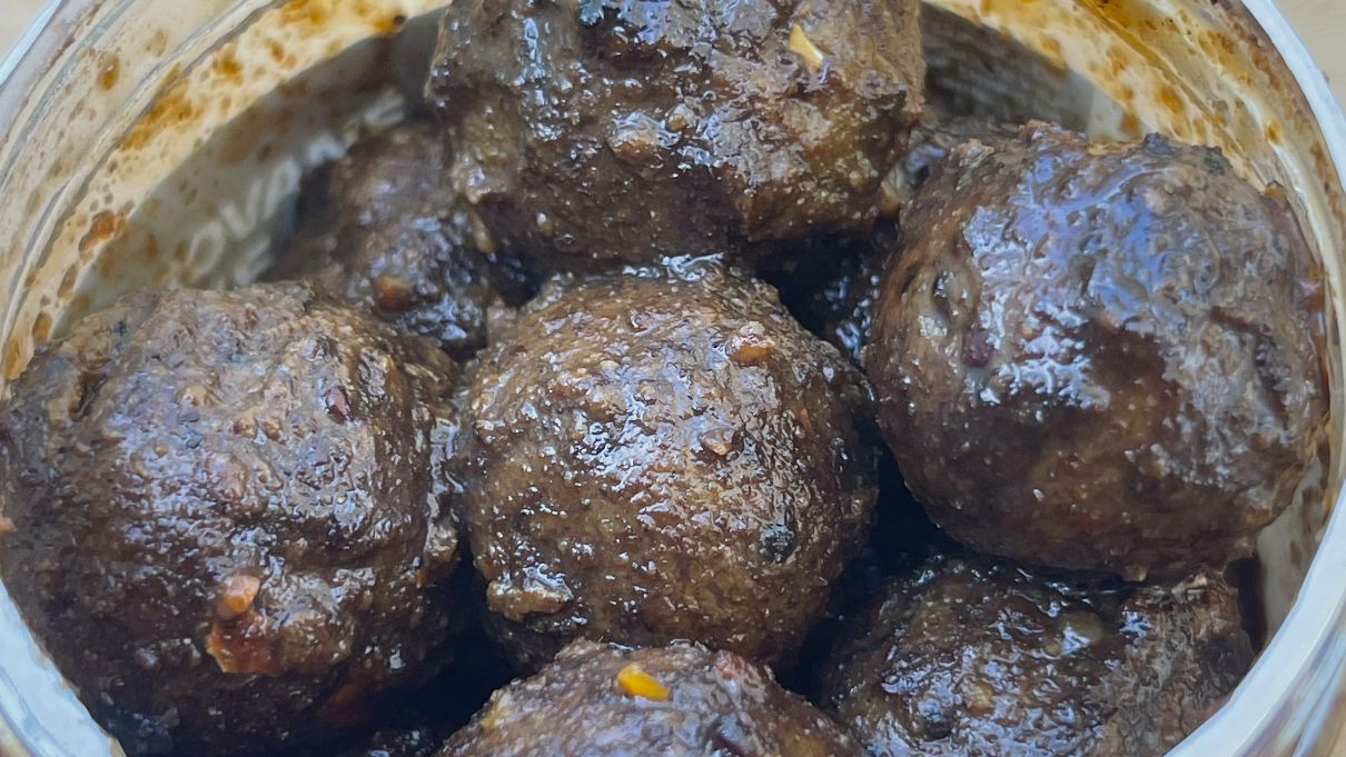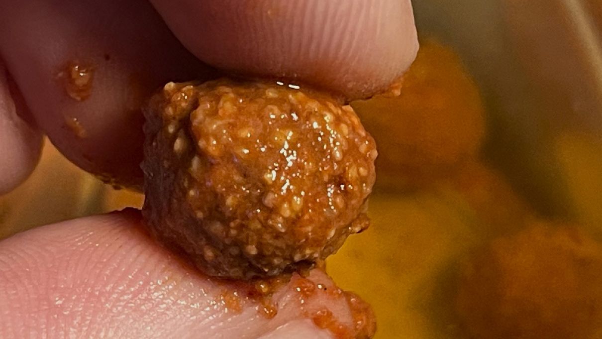 Aj keď je gulička dlhodobo naložená v dipe, napriek tomu jej stred je krásne tuhý