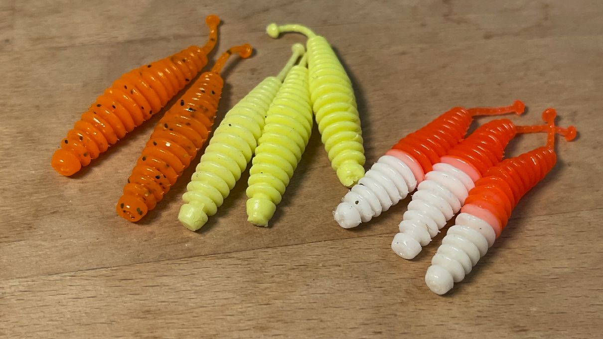Gumové larvy vo výraznom sfarbení pri rybárčení pod ľadom málokedy sklamú