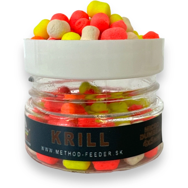 Micro Dumbell je najmenšia nástraha zo všetkých produktov Method Feeder Fans. Jej rozmery sú iba 4 mm x 5 mm . Má tvar dokonalého valčeka. V jednom balení nájdete štyri osvedčené fluo farby tejto malej nástrahy. Biela, červená, žltá a oranžová. Vybrali sme pre vás tie najchytľavejšie farby, s ktorými môžete prilákať aj tie najopatrnejšie ryby za akýchkoľvek podmienok.