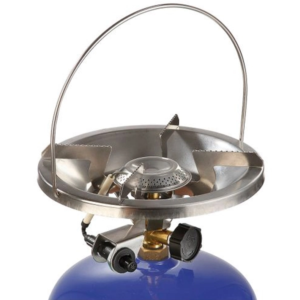 Jednoplatničkový vysokotlakový varič pre priame pripojenie k 2 kg propán-butánovej fľaši.