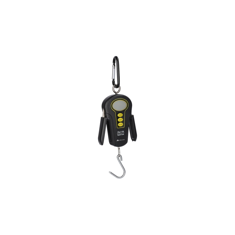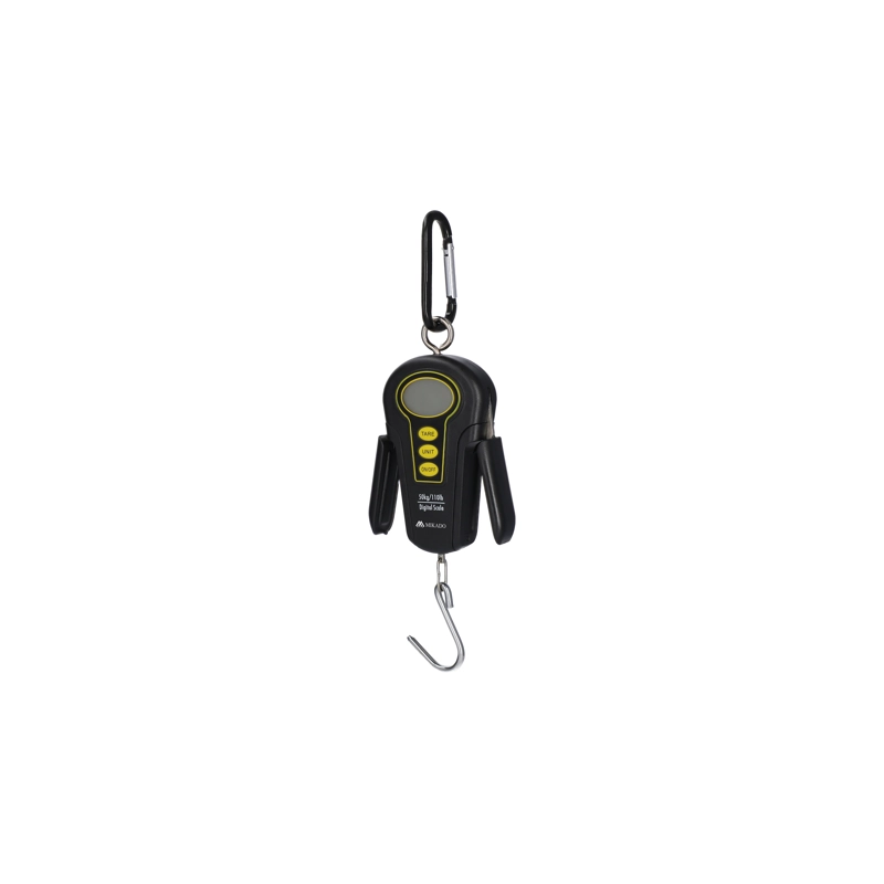 Ľahká a kompaktná digitálna závesná váha s kapacitou 50 kg a rozlíšením 10 g. Váha má zeleno podsvietený LCD displej.