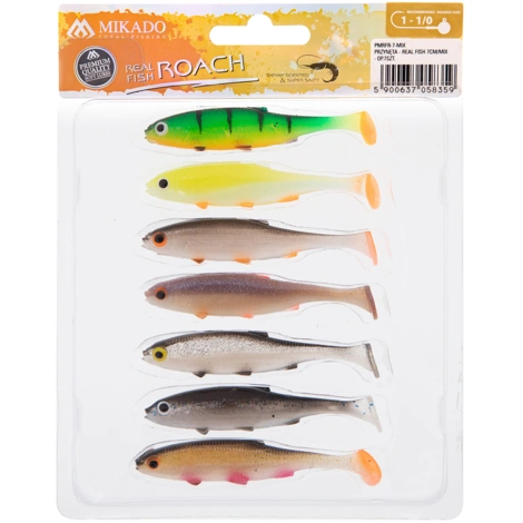 Real Fish Roach je realistická imitácia plotice. Je vyrobená zo silikónu. Vyrobili sme nástrahu s jemnou akciou a bezchybným tvarom chvosta, ktorá ľahko láka veľké ostrieže, šťuky aj zubáča. Výhodný mix farieb.