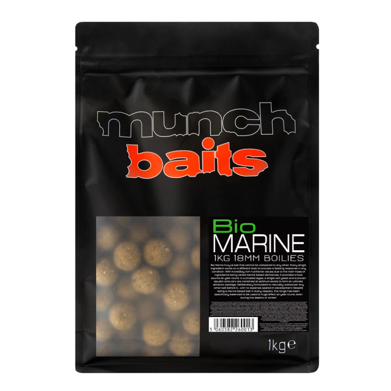 Bio Marine je skutočne boilies, ktoré nemožno porovnávať so žiadnym iným. Každá prísada pracuje na inej úrovni pre zabezpečenie stimulu na kŕmenie v akejkoľvek situácii. Ucelený zdroj potravy po celý rok vďaka neuveriteľne vysokým nutričným hodnotám založeným na derivátoch rôznych morských živočíchov. Kultivovaná morská riasa, jednobunkové kvasnice a osvedčený stimulant v optimálnom pomere zaisťujú ultimátnu atraktívnu nástrahu, ktorá funguje v priebehu celého roka, dokonca aj pri veľmi nízkych zimných teplotách. Skonštruované zámerne tak, aby predčilo akékoľvek boilies, ktoré bolo kedy vyrobené, bez kompromisu v nákladoch pri vývoji.