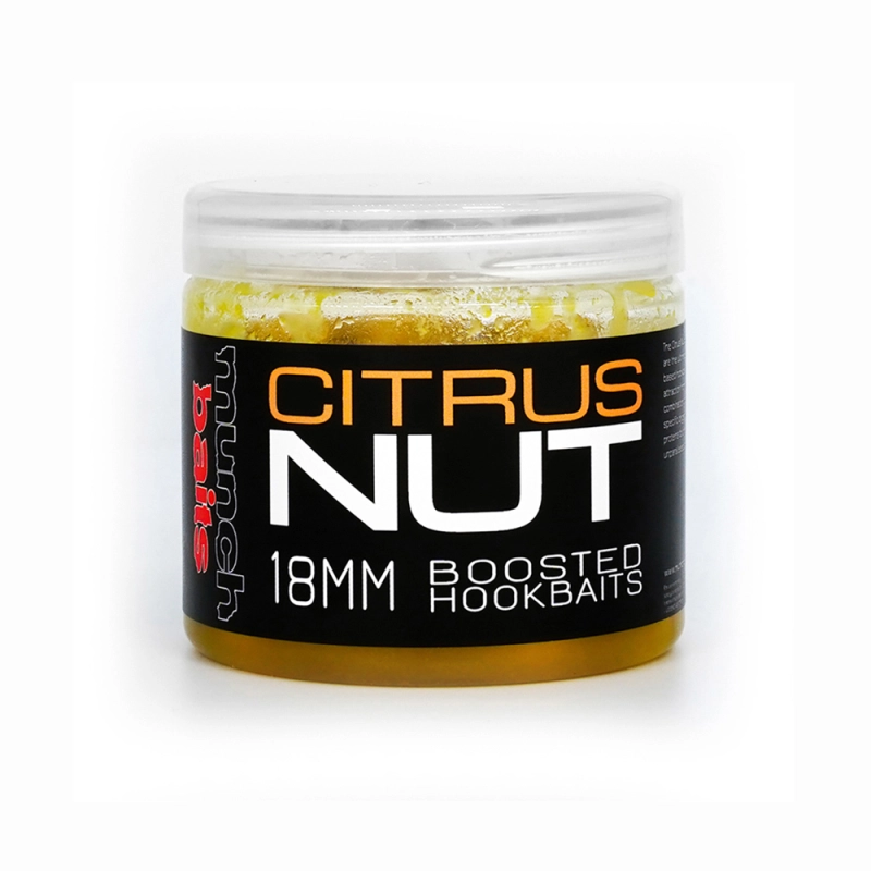 Dipované boilies Citrus Nut Boosted Hookbaits je tým najlepším z možností nástrah na háčik na báze citrusov-ovocie. Bezkonkurenčná kombinácia citrusových extraktov, špecifických organických kyselín a rozpustných proteínov, ktoré ponúkajú spoľahlivosť a bezkonkurenčnú príťažlivosť.