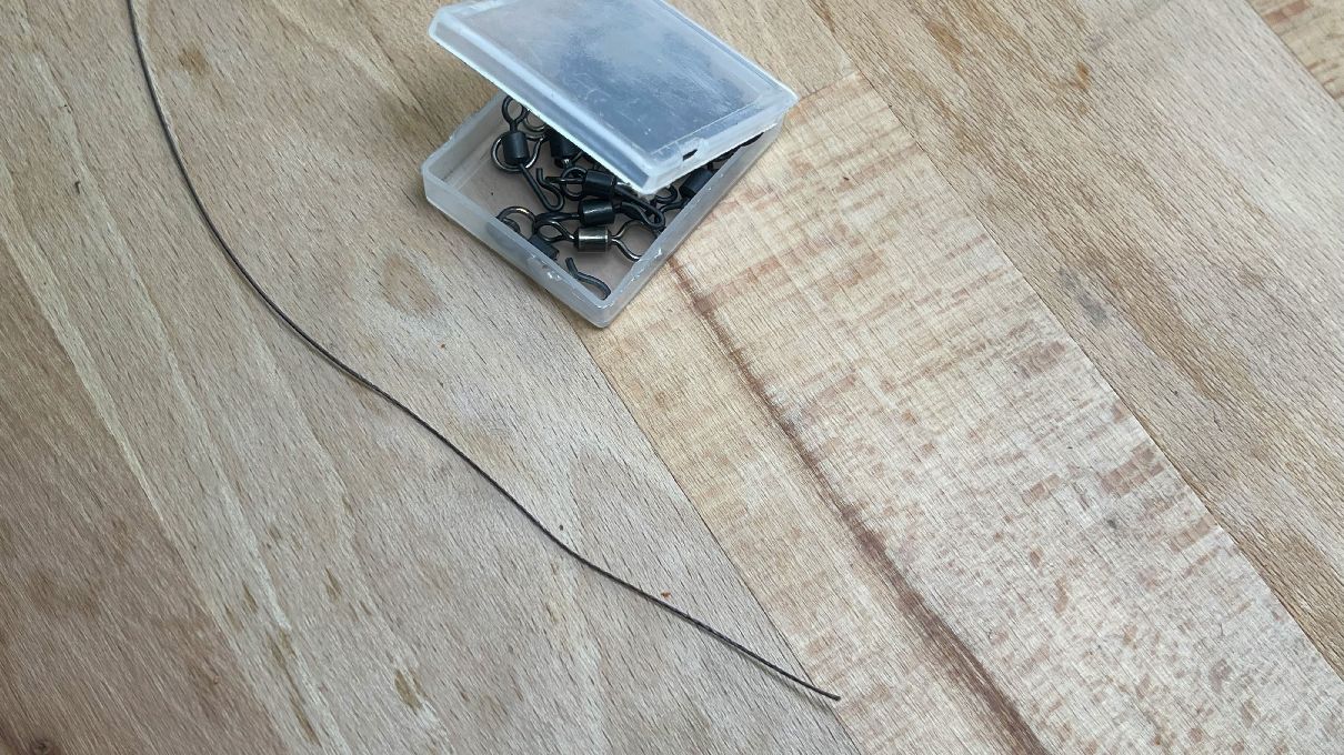 Vo chvíli, keď sme bezuzlovo nadviazali háčik na boilies, potom odstrihneme požadovaný kus šnúrky so stuženým povrchom. A potom na voľnom konci odstránime 6 až 10 centimetrov tuhého povrchu zo šnúrky, aby sme mohli nadviazať obratlík.