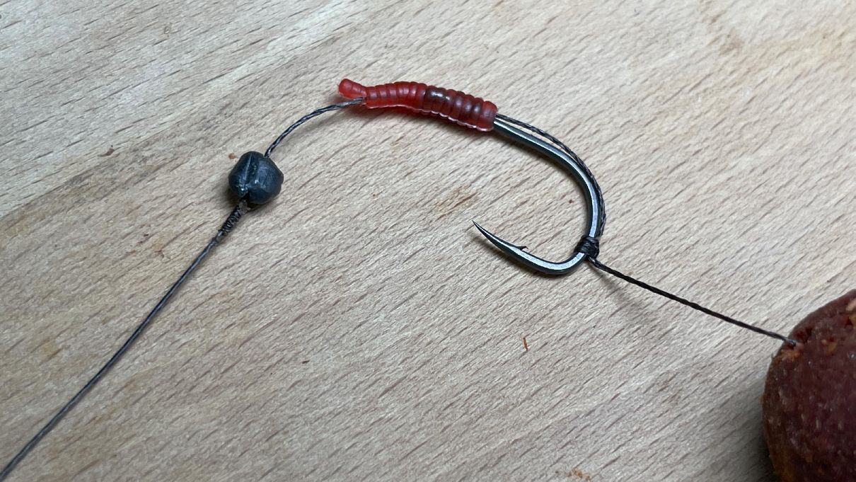 Náväzec na kapry zo stužené šnúrky možno ale ešte vylepšiť. Ako? Po nadviazaní háčika na boilies nad ním 2 až 3 centimetre zložíme už niekoľkokrát spomínaný tuhý poťah. A na tomto prechode – medzi tuhou a jemnou šnúrkou – následne pripevníme klasický broček alebo plastické olovo.