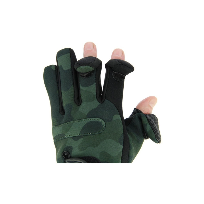 Kvalitné neoprénové rukavice sú vyhotovené v realtree dizajne. Dovoľujú vystrčiť tri prsty s možnosťou zafixovania na suchý zips. Ďalej disponujú elasticky prepruženým priestorom na zápästie pre väčšiu podporu. Samozrejmosťou sú textúrované končeky prstov a dlane pre väčšiu priľnavosť.