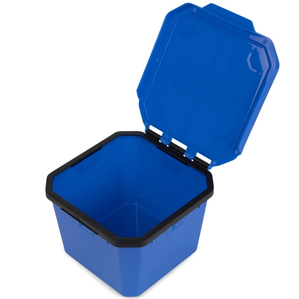 Nádoba na návnady s výklopným vekom umožňuje ľahké otváranie aj zatváranie.