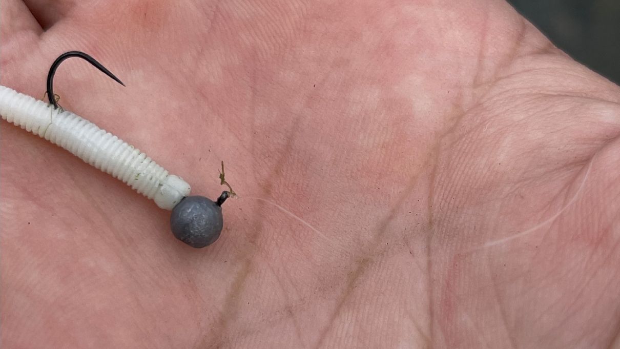 Preto volímmalé gumové nástrahy s 2gramovými jigmi s háčikmi bez protihrotu. Práve s takou nástrahou mám istotu, že môžem chytať aj v pomerne malej hĺbke. A aj keď je miesto plné spomínaných veľkých kameňov, tak s ľahkým jigom toľko neriskujem uviaznutie, pretože nástraha tak rýchlo nepadá ku dnu.