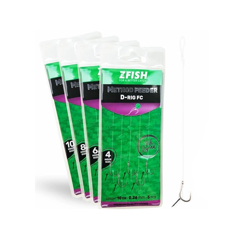 Hotový náväzec zhotovený z takmer neviditeľného fluorocarbonu, osadený extra ostrým háčikom s protihrotom a zakončený praktickým nástrahovým tŕňom.
